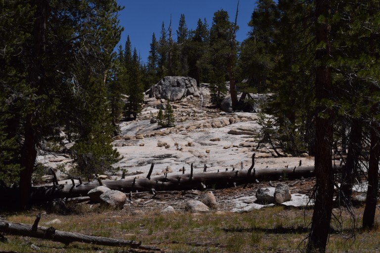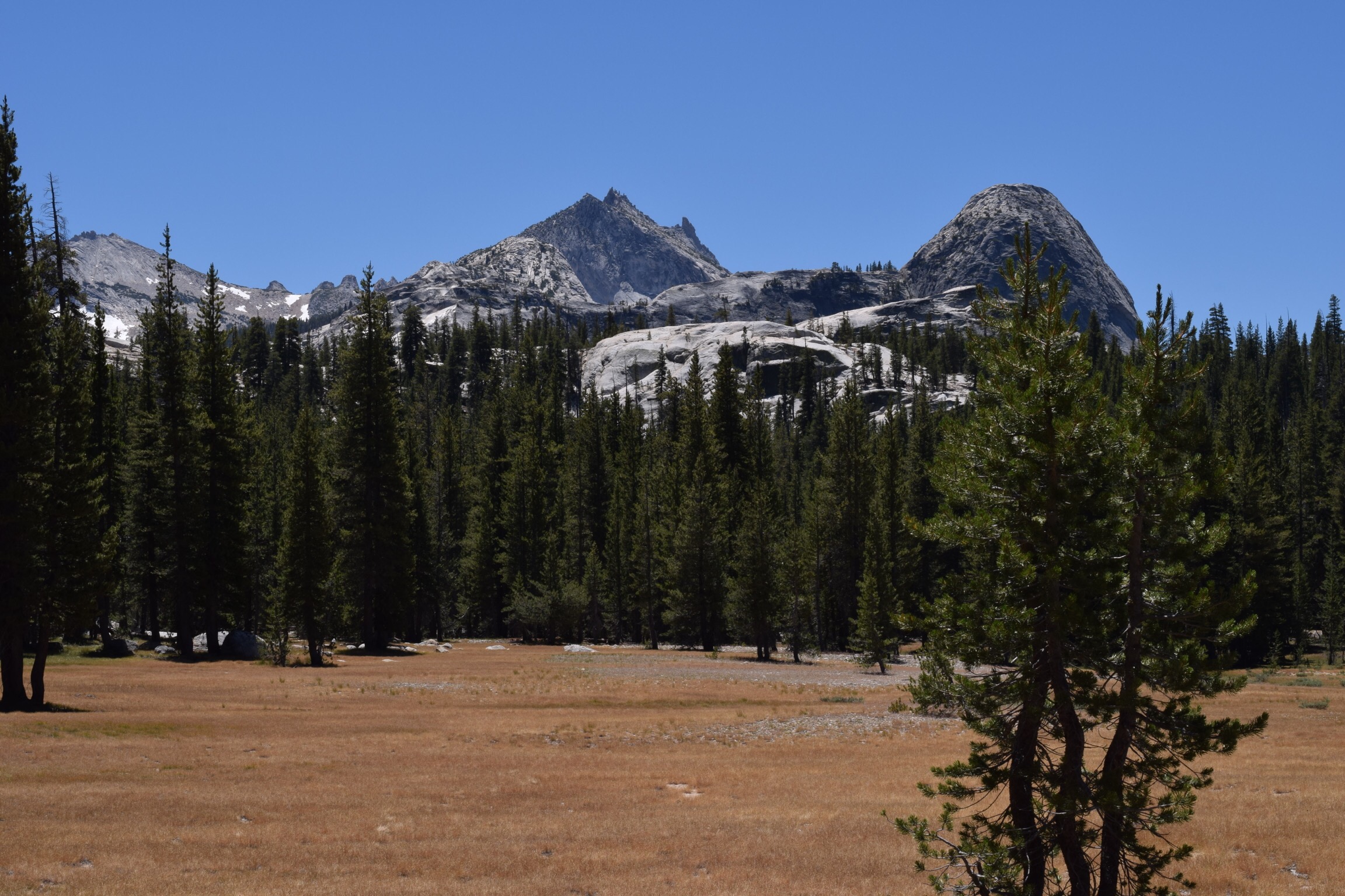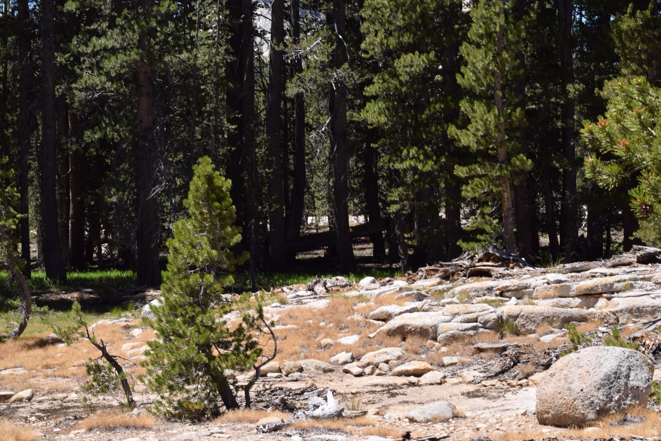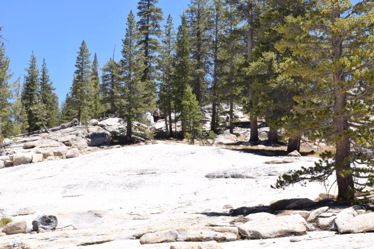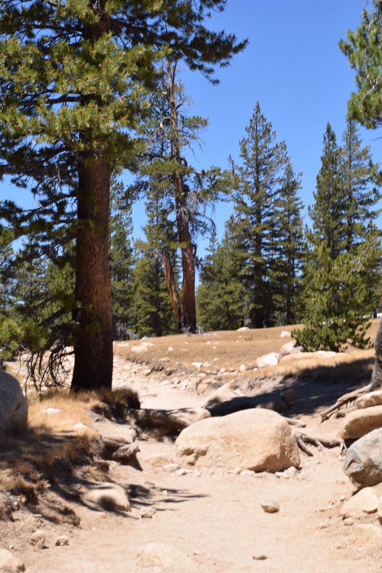 I learned this my doing a 7 mile ‘easy’ hike at the top of Yosemite Valley in a place I noted as I drove down to the valley yesterday. The place is Tuolumne Meadows and it is a meadow with a lovely river running through. Often frequented by deer and bears and is generally very popular with hikers on the Pacific Crest Trail and the John Muir Trail as it happens to be the trail access point.