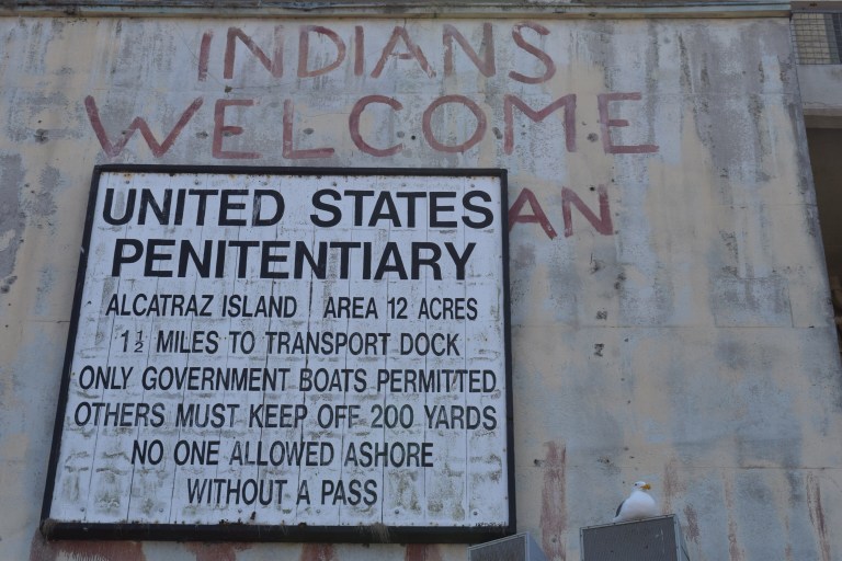The graffiti is from an illeagal Native American occupation of Alcatraz that occurred in a fruitless attempt to raise the issues of Native American rights. 89 Native Americans swam from San Francisco and took over Alcatraz for 19 months in the late 1960’s before being forcibly removed by the US government. The National park service has kept the graffiti as recognition of their plight and struggle which I thought was a nice gesture.